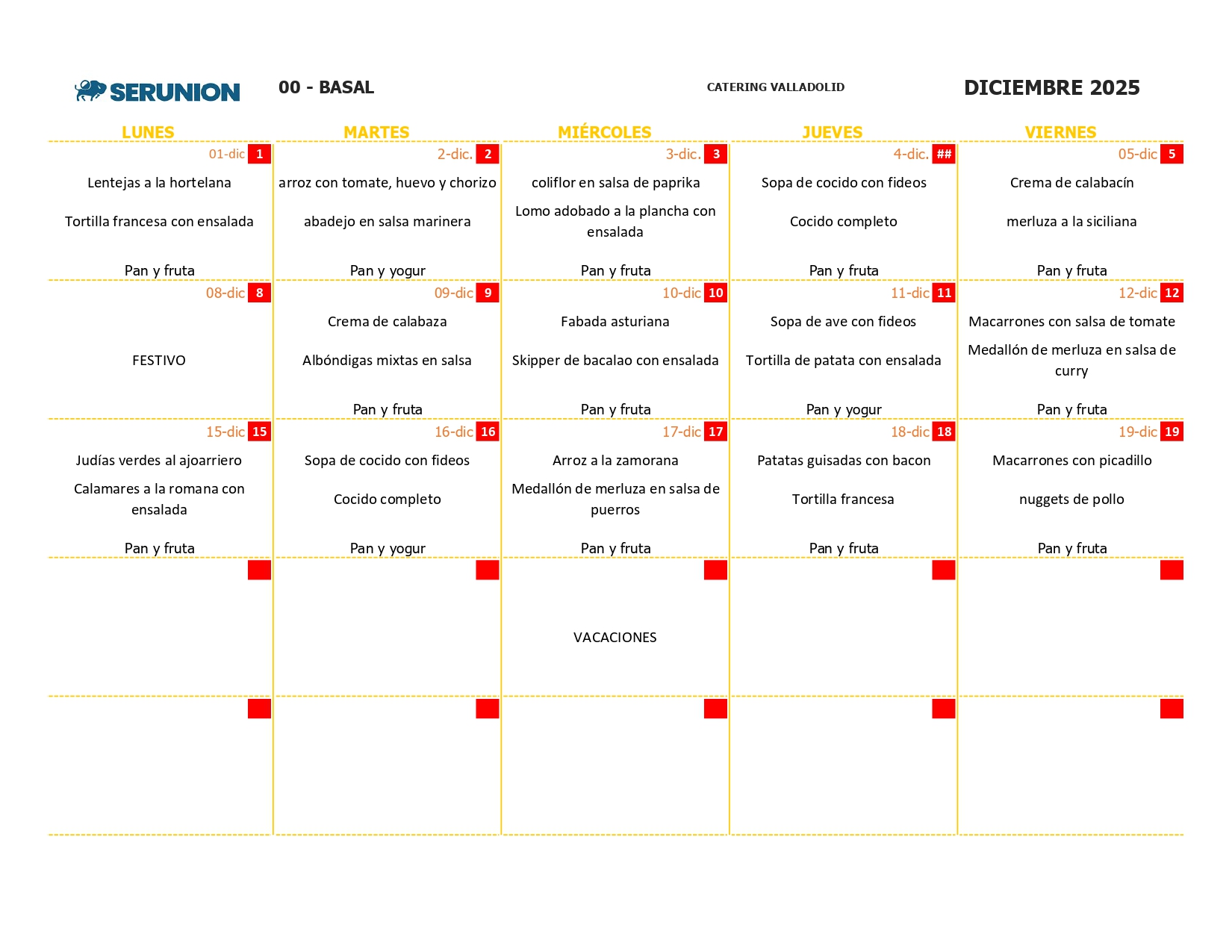 Los menús para dietas especiales pueden consultarse en la aplicación de comedores escolares.